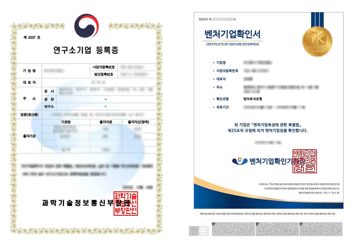 • 기업부설연구소·벤처기업·성과공유기업 등 핵심 기업인증 구축